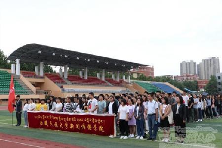 新闻与传播学院在操场举行升国旗仪式。学院党委书记庞晓勇,副书记任学琴,全体辅导员及在校学生参加了此次升国旗仪式。仪式由团学办主任罗亚娟主持。 在雄壮的国歌声中,五星红旗冉冉升起,全体肃静行注目礼。随后,庞晓勇书记发表国旗下讲话。在讲话中,他回顾了中国共产党的发展历程及新时代以来中国取得的巨大成就